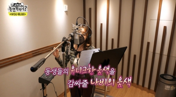 [금요저널] ‘WSG워너비’ 나비가 팀의 중심을 잡는 깊이있는 음색으로 디바형 가수로서의 면모를 뽐냈다 지난 2일 방송된 MBC 예능프로그램 ‘놀면 뭐하니?’에서는 콴무진 팀의 일원으로 나비, SOLE, 권진아, 엄지윤이 결정된 가운데 데뷔곡을 녹음하는 멤버들의 모습이 그려졌다.