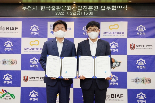[금요저널] 부천시와 한국출판문화산업진흥원은 지난 7월 29일 부천 책문화센터 조성과 운영을 통한 독서문화 발전, 지역의 창작 및 출판진흥을 위해 상호협력하기로 뜻을 모았다.