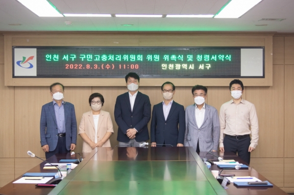 [금요저널] 인천 서구는 3일 구민 고충 해소와 권익 보호를 위한 ‘인천광역시 서구 구민고충처리위원회’ 위원 5명을 위촉했다고 밝혔다.