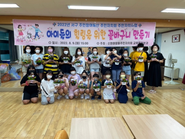 [금요저널] 인천 서구 신현원창동 주민자치회가 지난 9일 코로나19로 지친 아이들에게 힐링의 시간을 선사하기 위해 ‘꽃바구니 만들기’ 주민자치 사업을 진행했다고 10일 밝혔다.