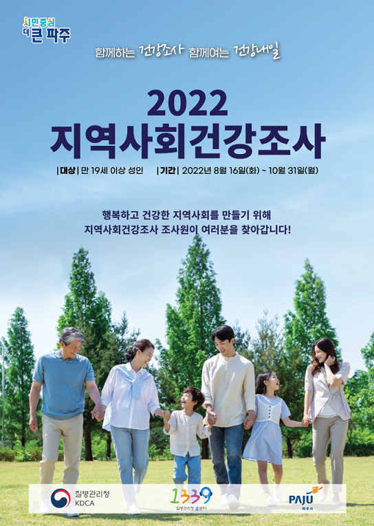 [금요저널] 파주시는 오는 16일부터 10월 31일까지 책임대학교인 서울대학교와 함께 지역사회건강조사를 한다고 밝혔다.