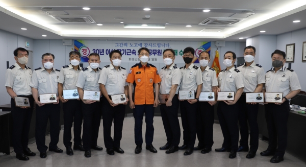 [금요저널] 화성소방서는 16일 소회의실에서 30년 이상 장기근속한 소방공무원 12명에게 경기도지사 공로패를 수여했다고 밝혔다.