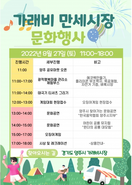 [금요저널] 양주시는 오는 27일 토요일 오전 11시 가래비중앙로상점가에서 지역상권 활성화를 위한‘가래비 만세시장 공유마켓’을 개최한다고 밝혔다.