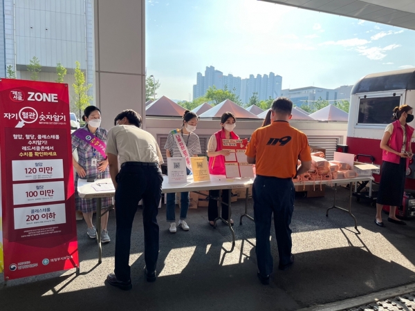 [금요저널] 의정부시 보건소는 8월 17일 심뇌혈관질환 예방관리사업 일환으로 의정부소방서 소속 직장인 200명을 대상으로 레드서클 캠페인을 실시했다.
