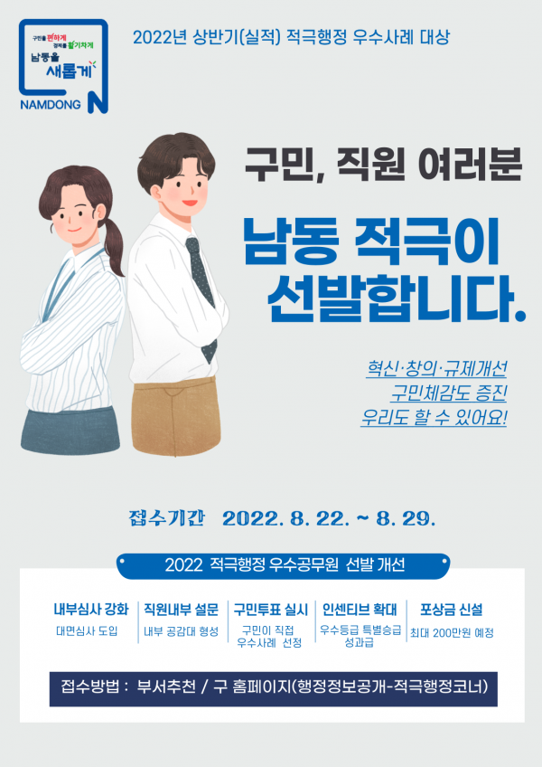 [금요저널] 인천시 남동구가 적극 행정 우수공무원 선발에 공정성을 확보하기 위해 올해 처음으로 구민 투표를 진행한다.