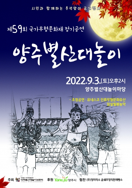 [금요저널] 양주시는 오는 9월 3일 양주별산대놀이마당 대공연장에서 우리 고유의 명절 한가위를 맞아 시민과 함께하는 추석맞이 ‘제59회 양주별산대놀이 정기공연’을 개최한다.