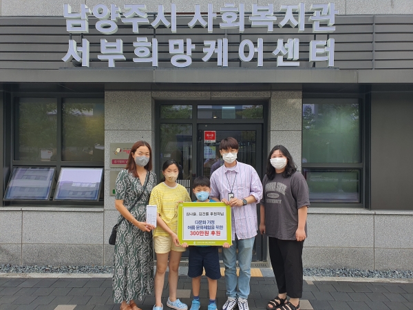 [금요저널] 남양주시사회복지관 서부희망케어센터는 지난 25일 김광오, 김나율, 김권률 후원자가 다문화 가정의 여름 여행을 지원하기 위해 300만원을 전달했다고 밝혔다.
