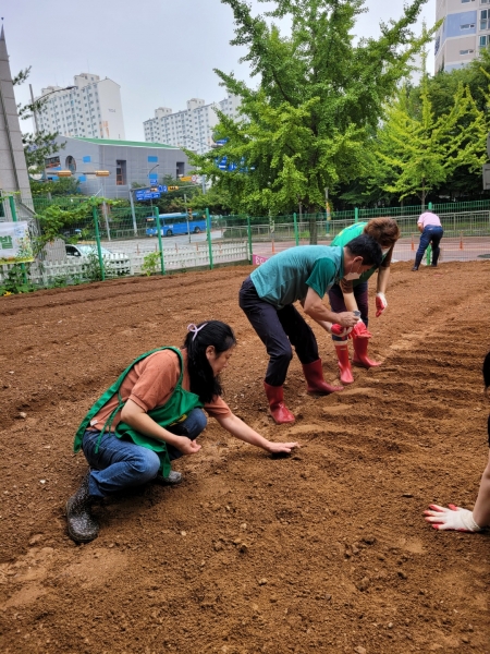 여름에는 감자, 가을에는 무 등을 심고 있으며 이번에 심은 무는 남동구 이웃사랑 김장 행사에 사용될 예정이다.