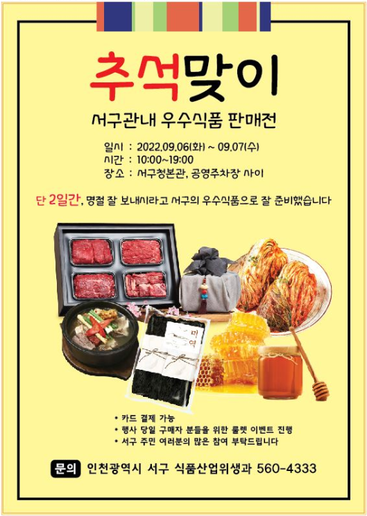 서구, 오는 6일부터 이틀간 추석맞이 관내 우수식품 판매점 개최