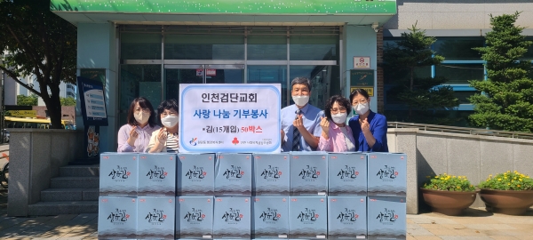 이어 원당동에 소재한 검단교회도 추석을 맞이해 원당동 행정복지센터에 ‘김 선물세트 50개’를 기부하며 나눔을 실천했다.