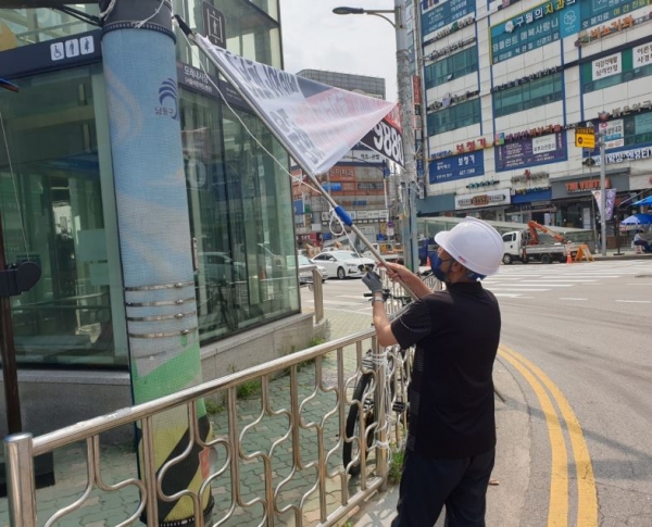 구는 각 동을 중심으로 학교 주변 현장 정비에 주력할 예정이며 적발·수거한 현수막, 벽보, 전단 등 유동 광고물은 과태료를 부과할 예정이다.