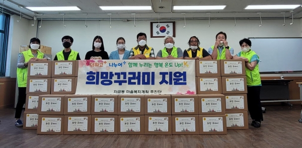 [금요저널] 의정부시 자금동 마을복지계획추진단은 추석명절을 맞이해 9월 1일 관내 저소득 독거어르신들 50가구를 대상으로 희망꾸러미를 전달했다.