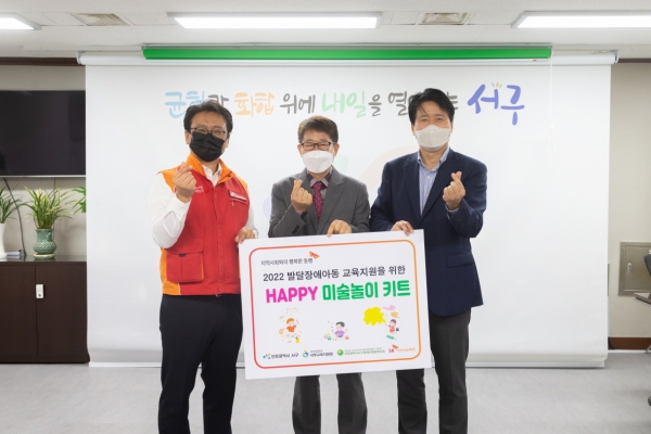 서구는 5일 ‘Happy 미술놀이키트 지원사업’을 위한 SK인천석유화학 후원금 전달식을 개최했다고 밝혔다.