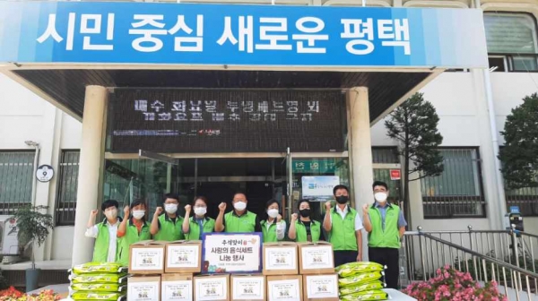 [금요저널] 평택시 신평동 지역사회보장협의체는 지난 7일 형편이 어려운 이웃이 따뜻한 추석 명절을 보낼 수 있도록 ‘가까이 더 가까이 명절 음식 선물세트 및 백미’ 나눔 행사를 진행했다.