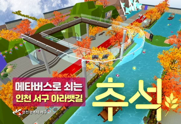 [금요저널] 인천 서구가 추석을 맞아 서구 대표 랜드마크 중 하나인 ‘아라뱃길’을 3D 메타버스 플랫폼에서 추석을 테마로 제작해 주민에게 선보인다고 8일 밝혔다.