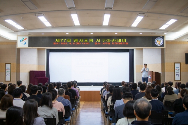 한편 서구는 오는 10월 28일에 열릴 제78회 서구아카데미에 가족 상담과 소통 분야 전문가인 김지윤 강사를 초청해 ‘슬기로운 가족생활’이라는 주제로 서구아카데미를 이어갈 예정이다.