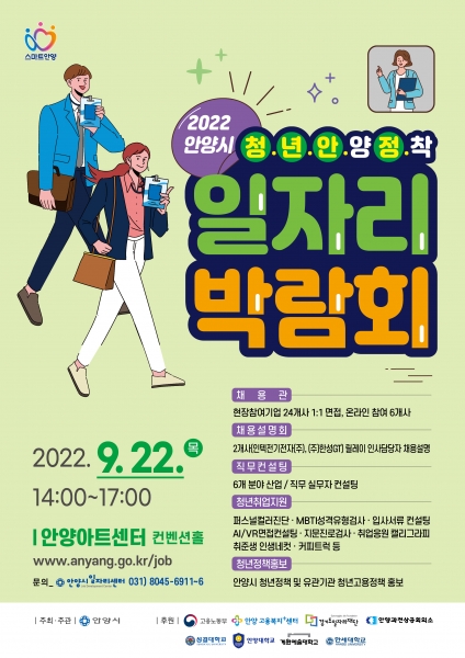 [금요저널] 안양시가 오는 22일 오후 2시 안양아트센터에서 청년들의 안양 정착을 위한 ‘2022 청년안정 일자리박람회’를 개최한다고 20일 밝혔다.