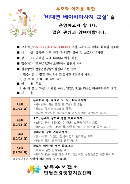 안산시 반월건강생활지원센터, 베이비마사지 교실 온라인 운영