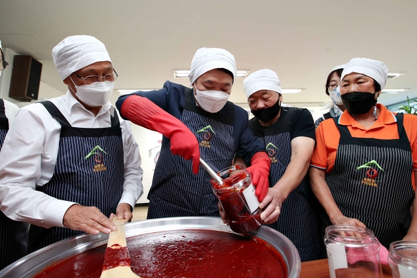 [금요저널] 인천 동구 송림1동 주민자치회는 지난 23일 관내 저소득 취약계층 100세대를 대상으로 정겨운 송림골 고추장 담그기 행사와 사랑이 가득 담긴 반찬 나눔 행사를 진행했다.