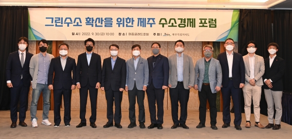[금요저널] 제주특별자치도는 산업통상자원부, 한국남부발전, 수소 관련 기업 등을 초청한 가운데 30일 오전 10시 메종글래드 호텔 2층 연회장에서 ‘그린수소 확산을 위한 제주 수소경제’ 포럼을 열었다.