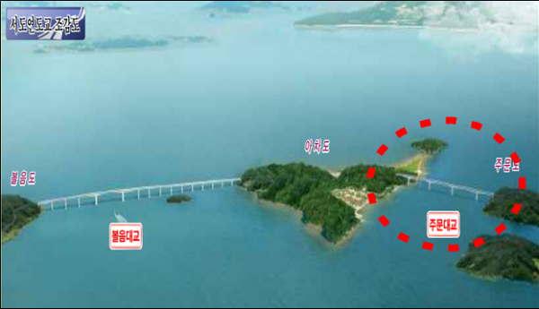 이 사업은 740억원을 들여 서도면 주문도·아차도·볼음도 등 3개 섬을 연결하는 총연장 1.6㎞ 규모의 해상 교량 2개를 건설하는 사업이다.