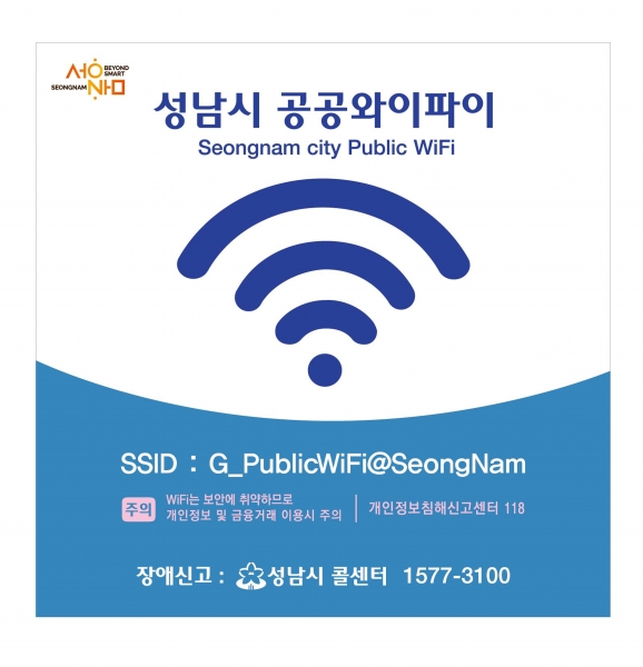 성남시 공공와이파이를 이용하려면 스마트폰의 Wi-Fi 설정에서‘G_PublicWiFi@SeongNam’ 또는 ‘Public WiFi Free’를 선택한 후 이용하기를 누르면 된다.