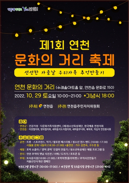 이번 문화의 거리 축제는 연천읍이 주최하고 연천읍주민자치위원회가 주관하며 연천군 건강가정·다문화가족지원센터, 연천군청소년육성재단, 한국예총 연천지회 및 연천읍이장협의회, 방위협의회, 새마을지도자협의회, 부녀회, 체육회, 연천봉사회가 참여한다.