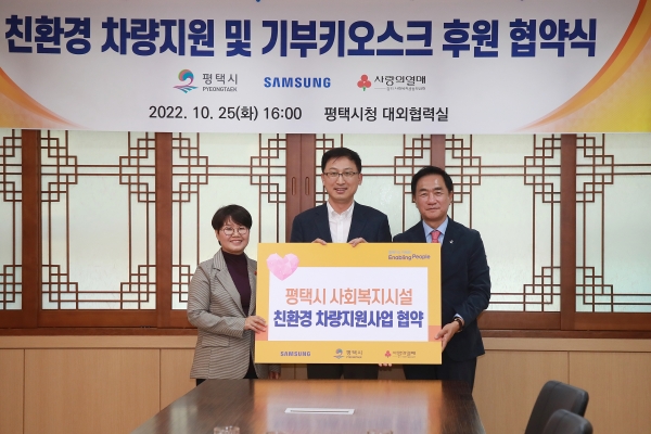 [금요저널] 삼성전자DS부문과 평택시, 경기사회복지공동모금회는 지난 25일 ‘사회복지기관 친환경차량 지원사업’을 위한 업무협약을 실시했다.