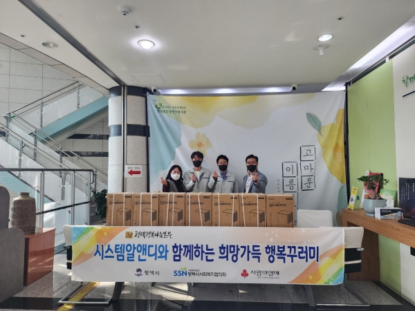 [금요저널] ㈜시스템알앤디는 지난 19일 평택행복나눔본부와 함께 북부장애인복지관과 부락종합사회복지관에 방문해 총 400만원 상당의 생필품 및 제습기를 전달했다.