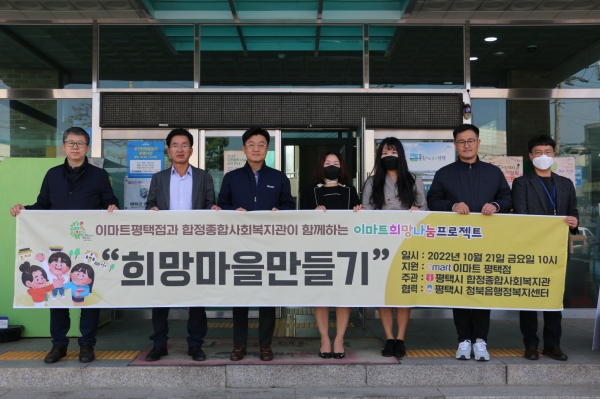 [금요저널] 지난 10월 21일(금)에 이마트평택점(점장 이경택)에서는 합정종합사회복지관(관장 이재오), 평택시 청북읍 행정복지센터(읍장 박승호)와 함께 이마트희망나눔프로젝트 ‘희망마을 만들기’를 진행했다.