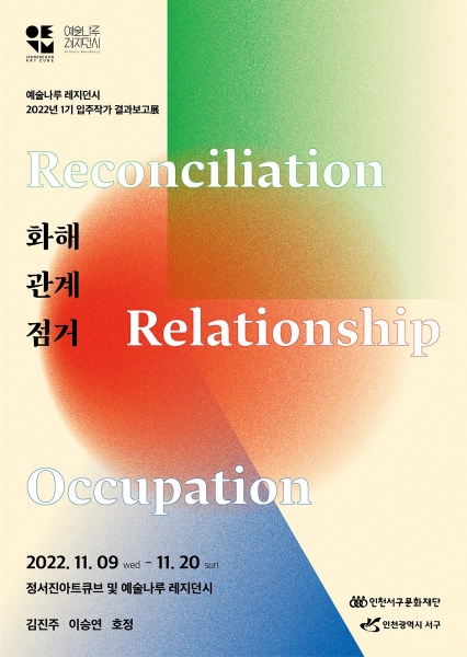 전시명은 세 명의 작가가 각각 직접 고른 단 하나의 키워드를 나열해 ‘화해·관계·점거’로 작가 개인 또는 레지던시라는 이름 안에서 따로 또 같이 보낸 7개월 동안 축적된 경험과 시간, 예술적 고민의 결과와 흔적을 확인할 수 있다.