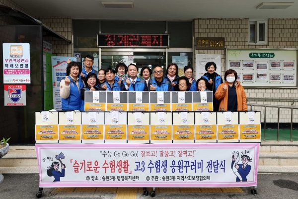[금요저널] 인천 동구 송현3동 지역사회보장협의체는 지난 31일 고3 수험생 18명에게 ‘슬기로운 수험생활’ 응원꾸러미를 전달했다.
