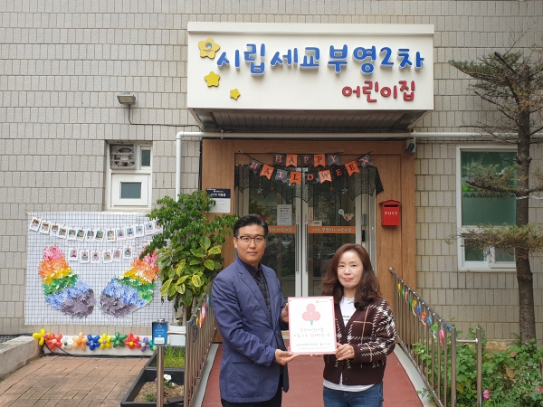 [금요저널] 평택행복나눔본부는 지난 10월 28일 시립세교부영2차어린이집에 착한가게 현판을 전달했다.