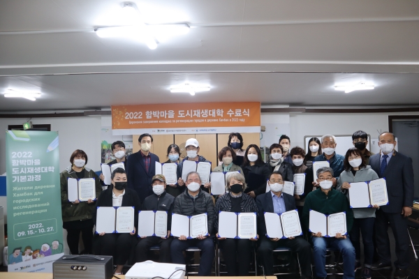 [금요저널] 연수구는 지난 3일 함박마을도시재생현장지원센터에서 수강생 등 관계자 30여명이 참석한 가운데 ‘2022 함박마을 도시재생대학 기본과정 수료식’을 개최했다.