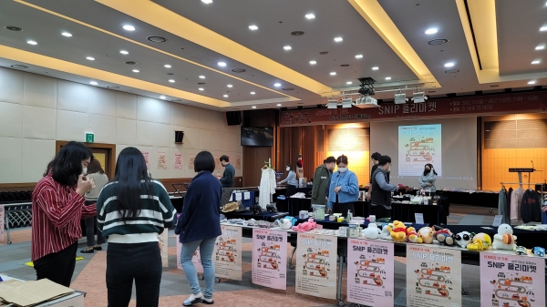 [금요저널] 성남산업진흥원이 기업과 함께하는 나눔·상생의 플리마켓 운영을 통해 자원 재순환과 나눔을 실천하고자 지난 7일과 8일 양일간 킨스타워 7층 대강당에서 개최한 ‘사계절과 이 가을, 입주기업과 함께하는 SNIP 플리마켓’ 행사가 성황리에 마무리됐다.