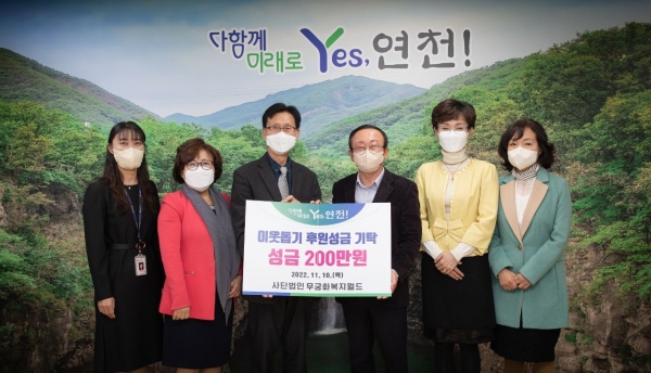 김덕현 연천군수는 “연천군 복지사각지대 소외된 이웃을 위한 희망의 메시지와 지속적인 관심과 후원성금을 전해주고 계신 무궁화복지월드에 진심으로 감사드리며 성금은 경기사회복지공동모금회를 통해 관내 코로나19 극복을 위한 생계지원비로 유용하게 사용하도록 하겠다”고 말했다.