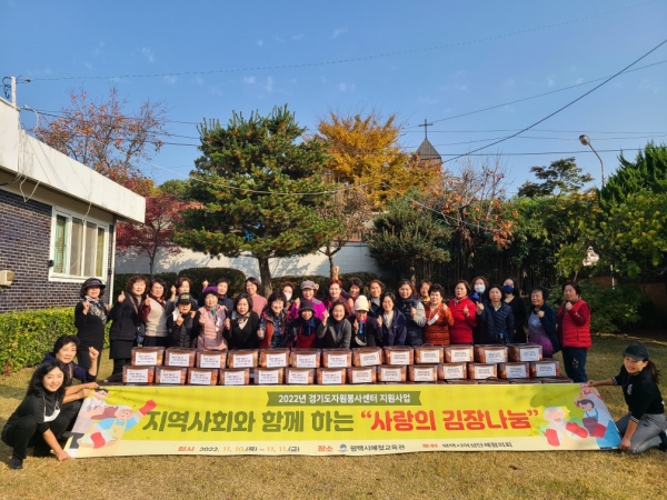 평택시 예절교육관에서 진행된 김장나눔 행사는 경기도자원봉사센터 김장지원 공모사업비와 지역 내 기업체 후원으로 진행됐으며 이틀간 여성단체 회원 등 80여명이 함께 모여 김장재료들을 정성껏 다듬고 버무리며 뜻깊은 봉사의 시간을 가졌다.