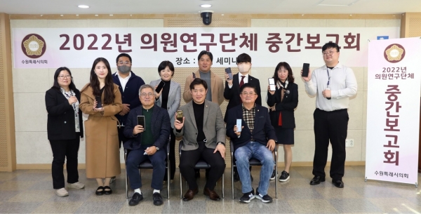 [금요저널] 수원특례시의회 의원연구단체인 ‘스마트시티 청년복지 연구회’가 18일 의회 세미나실에서 연구활동 중간보고회를 개최했다.