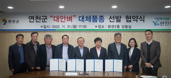 [금요저널] 연천군은 지난 21일 군청 상황실에서 대안벼 보급종 공급 중단에 따른 대안벼 대체품종 선발 협약을 맺었다고 22일 밝혔다.