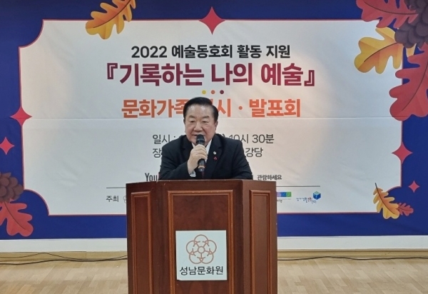 [금요저널] 성남문화원은 경기문화재단 지원으로 2022 예술동호회 활동 지원‘기록하는 나의 예술’문화가족 전시·발표회를 11. 25 오전10시30분 성남문화원 3층 강당에서 개최했다.