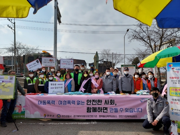 [금요저널] 연천군은 지난 24일 전곡읍에서 유관기관과 함께 아동학대·여성폭력 예방 홍보 캠페인을 진행했다고 25일 밝혔다.
