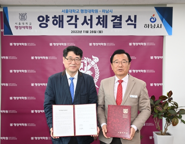 이번 협약은 지난 11월 9일 이현재 하남시장의 서울대 행정대학원 강연 후 정광호 행정대학원장의 제안으로 이뤄졌다.