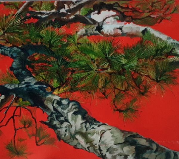 자연을 사랑하는 김영희 작가는 ‘불로장생’의 상징인 소나무를 사실적으로 그린다.