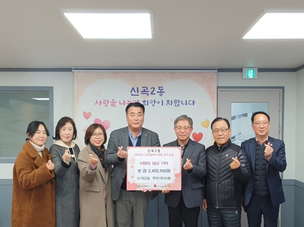 [금요저널] 의정부시 신곡2동 주민자치회는 12월 5일 100일간 사랑릴레이 배턴 잇기에 동참해 이웃 사랑 성금 240만 5천960원을 기탁했다.