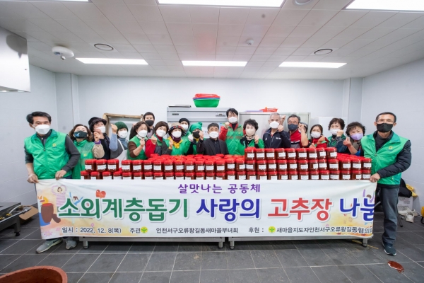 [금요저널] 인천 서구 오류왕길동 새마을부녀회와 새마을협의회는 지난 8일 오류왕길동 행정복지센터 내 공유부엌에서 ‘사랑의 고추장 나눔’ 행사를 실시했다.
