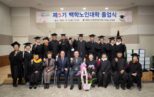 [금요저널] 연천군은 지난 9일 연천노인복지관 대강당 3층에서 김덕현 군수를 비롯해 심상금 군의회 의장 등이 참석한 가운데 제34기 노인대학 졸업식을 개최했다고 12일 밝혔다.