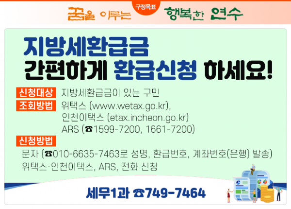 연수구, 지방세 환급금 간편하게 환급 신청하세요