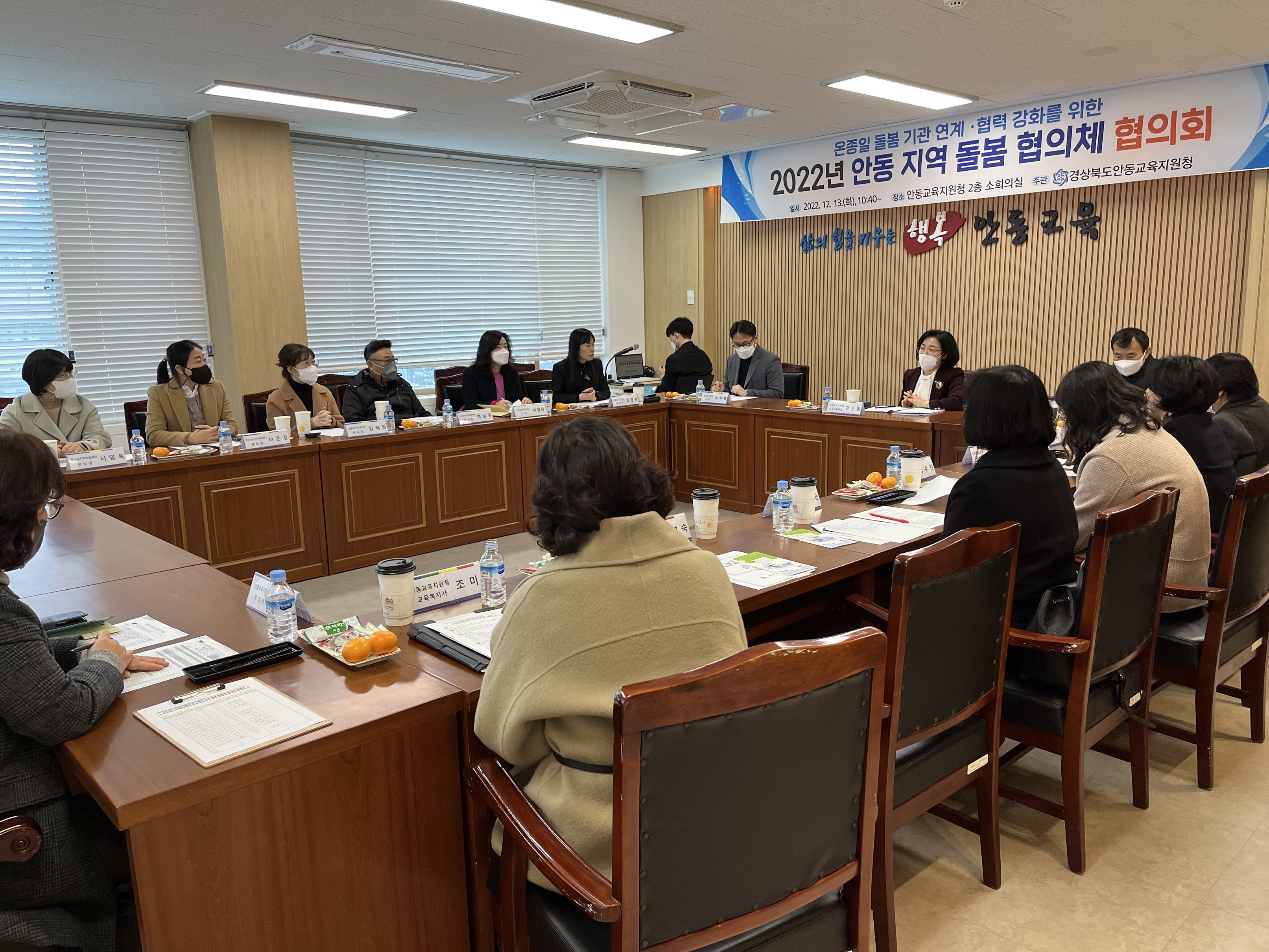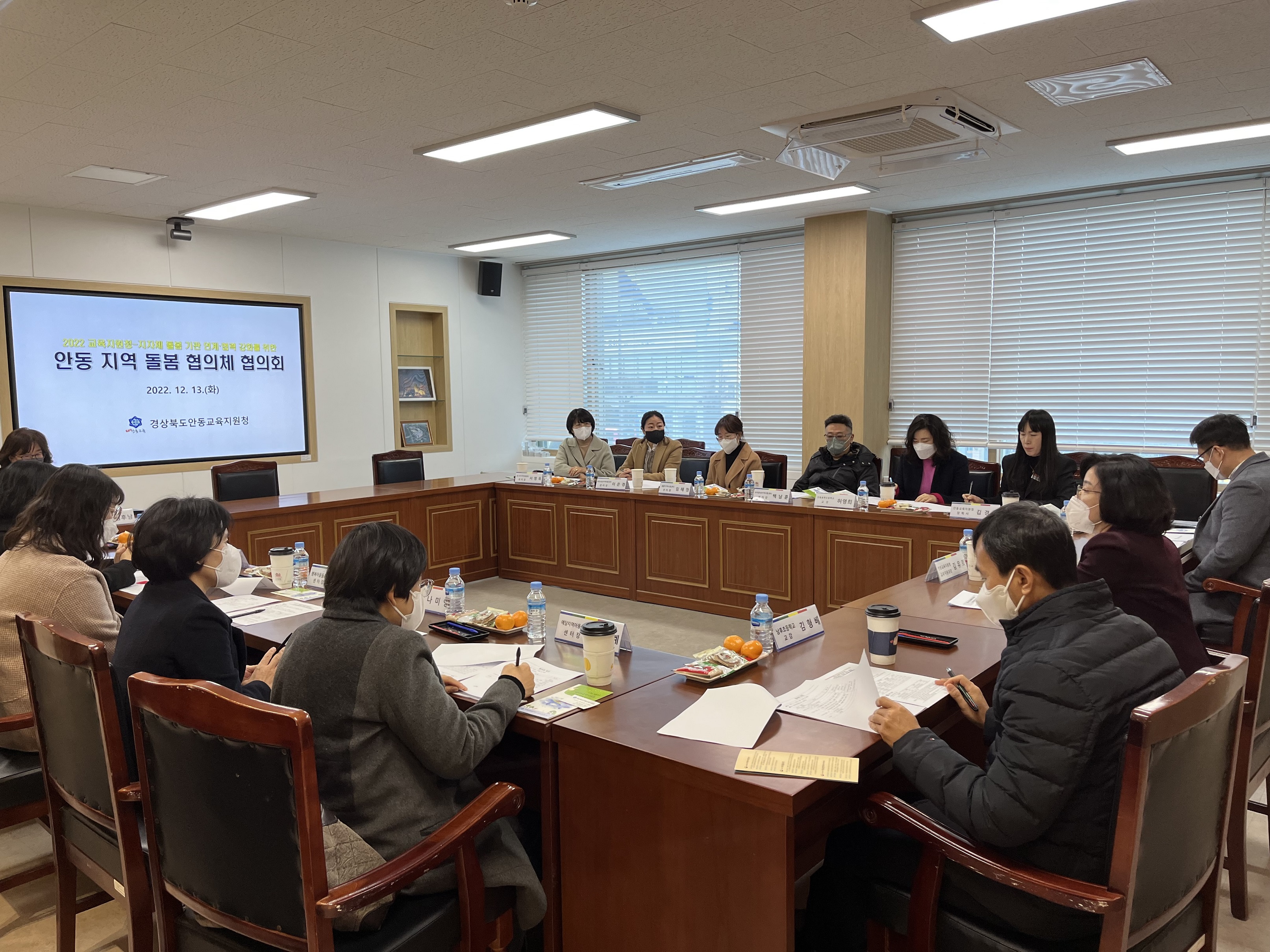 □ 경상북도안동교육지원청(교육장 이순호)은 12월 13일(화) 안동교육지원청 소회의실에서 초등 돌봄 공백을 최소화하고 안정적인 돌봄 운영을 위한 방안을 마련하기 위해 안동 지역돌봄협의체 협의회를 실시하였다.