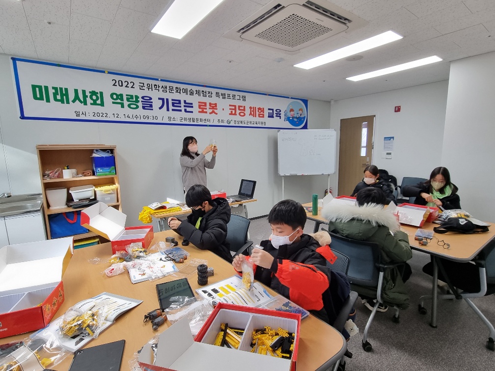 □ 군위교육지원청(교육장 송경란)은 12월 14일(수) 군위생활문화센터에서 관내 소규모 학교 5학년 학생 24명을 대상으로 「2022년 군위학생문화예술체험장 특별프로그램」을 운영하였다.