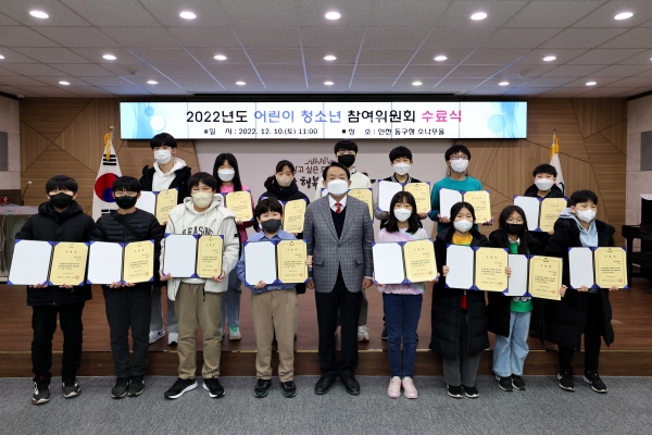 한편 동구는 내년 2월부터 2023년 어린이·청소년 참여위원회를 모집할 계획이며 공고는 동구 홈페이지를 통해 게재할 예정이다.